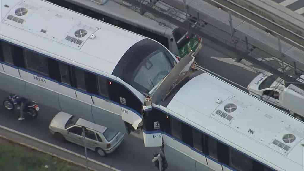 Uma colisão entre duas composições de trens paralisou totalmente a operação da Linha 15 - Prata, monotrilho em via elevada que liga a zona sul à zona leste da capital paulista. O acidente ocorreu entre as estações Sapopemba e Jardim Planalto, na zona leste, por volta das 4h30, antes do início da operação comercial, durante a movimentação de posicionamento dos trens, informou a Companhia do Metropolitano de São Paulo - Metrô.