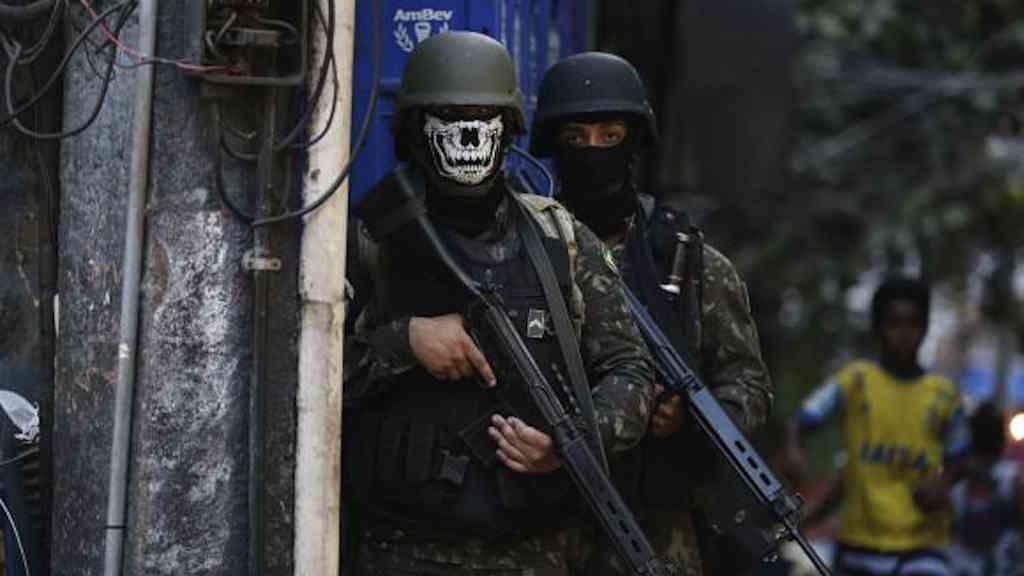 Nesta semana, circularam imagens e fotos com soldados que participam da operação na Rocinha usando máscaras com desenhos de caveira