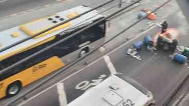 Uma mulher que estava em um táxi filmou a ação do grupo, mostrou para o telejornal da TV Globo, Bom Dia Rio. Um dos suspeitos desce e ainda rouba o celular de outro motorista, voltando ao ônibus em seguida.