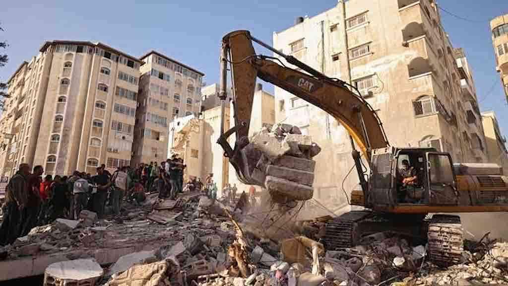 Escavadeira ajuda na busca por sobreviventes nos destroços de Gaza