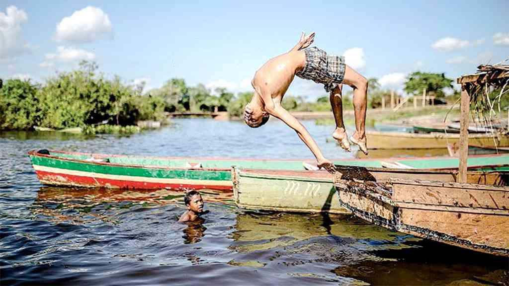 O contato com a natureza aumenta a autoestima de crianças como estas, que brincam nas águas do Rio Araguaia