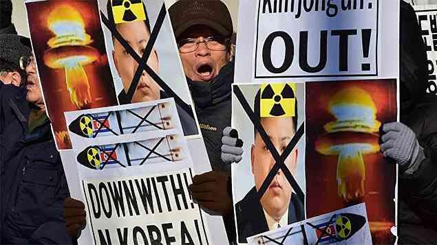 Manifestantes da Coreia do Sul protestam contra os irmãos do Norte