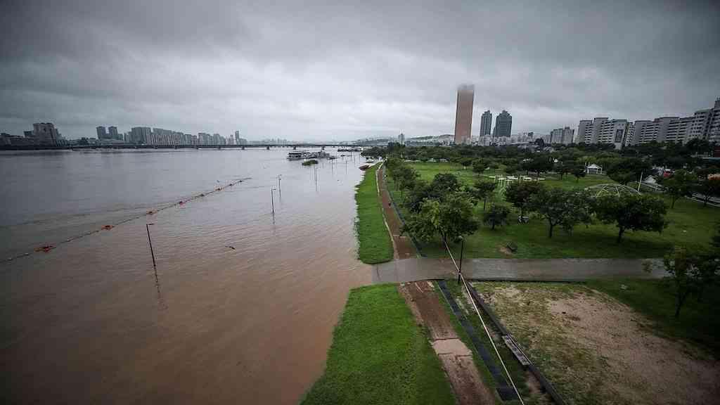 A precipitação excedeu 140 milímetros (mm) durante uma hora no distrito de Dongjak de Seul. A chuva mais forte registada em 60 minutos desde 1942.