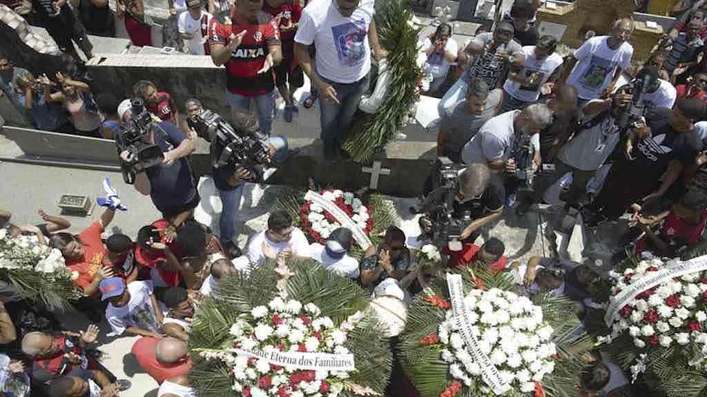 Sepultamento do corpo do goleiro do Flamengo, Christian Esmério, de 15 anos, no Cemitério de Irajá. O atleta foi um dos 10 mortos no incêndio de sexta-feira em um dos alojamentos do Ninho do Urubu