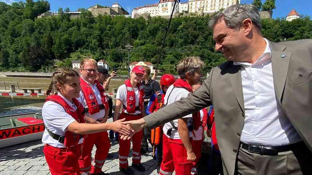 Governador da Baviera, o conservador Markus Söder, do partido CDU, visitou áreas alagadas no estado diversas vezes nos últimos dias.