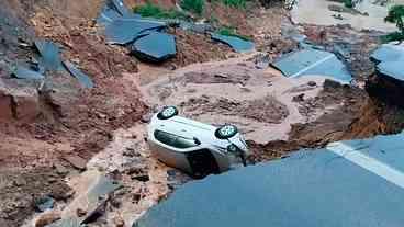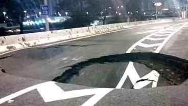 Dois veículos foram engolidos por uma cratera aberta em um bairro nobre de Nápoles, sul da Itália, na manhã desta quarta-feira.