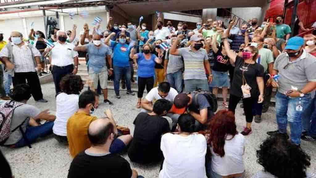Os protestos eclodiram em meio a uma crise econômica e sanitária agravada pela pandemia do novo coronavírus, com filas para obter comida, escassez de medicamentos e recorrentes cortes de energia.