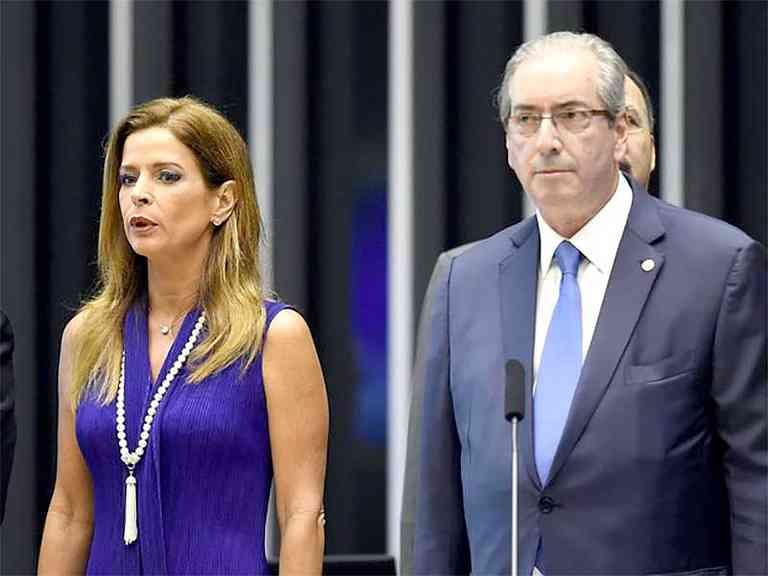 Cunha e a mulher dele, a jornalista Claudia Cruz, respondem a processo por corrupção Fac-símile do mandado de prisão do ex-deputado