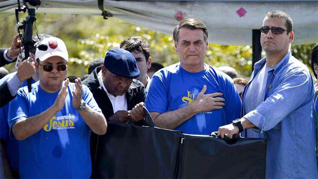 Bolsonaro, protegido por guarda-costas e escudos blindados, trata-se na terceira pessoa e diz ser 'Johnny Bravo', personagem de um desenho animado