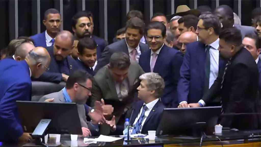 Ao longo de horas, com transmissão pela TV Câmara, os mesmos congressistas que impediram o acesso do presidente da Câmara, deputado Hugo Motta (Republicanos-PB), à Mesa Diretora, alegaram que o ato foi pacífico e não houve qualquer intenção de atrapalhar o andamento dos trabalhos, na Casa.