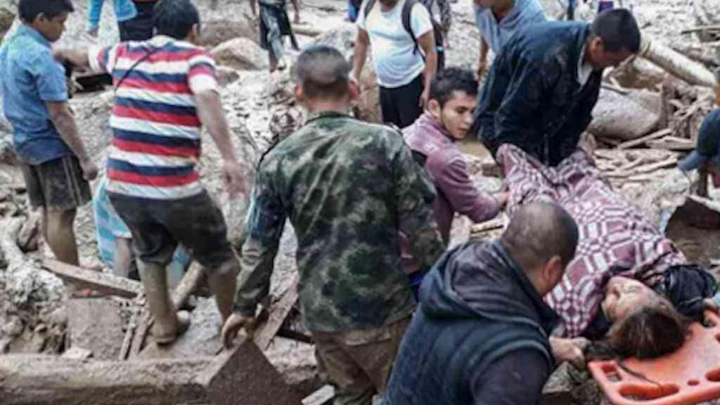 Chuvas fortes causaram o transbordamento de vários rios, jogando sedimentos contra casas e estradas na capital provincial de Mocoa.