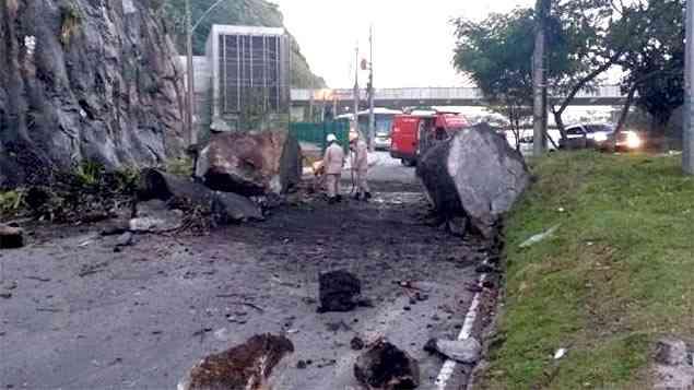 O deslizamento ocorreu no Itanhangá, bairro da zona oeste que faz parte da região administrativa da Barra da Tijuca. As pedras caíram no meio da via, logo após a Ponte Velha. Ninguém ficou ferido.