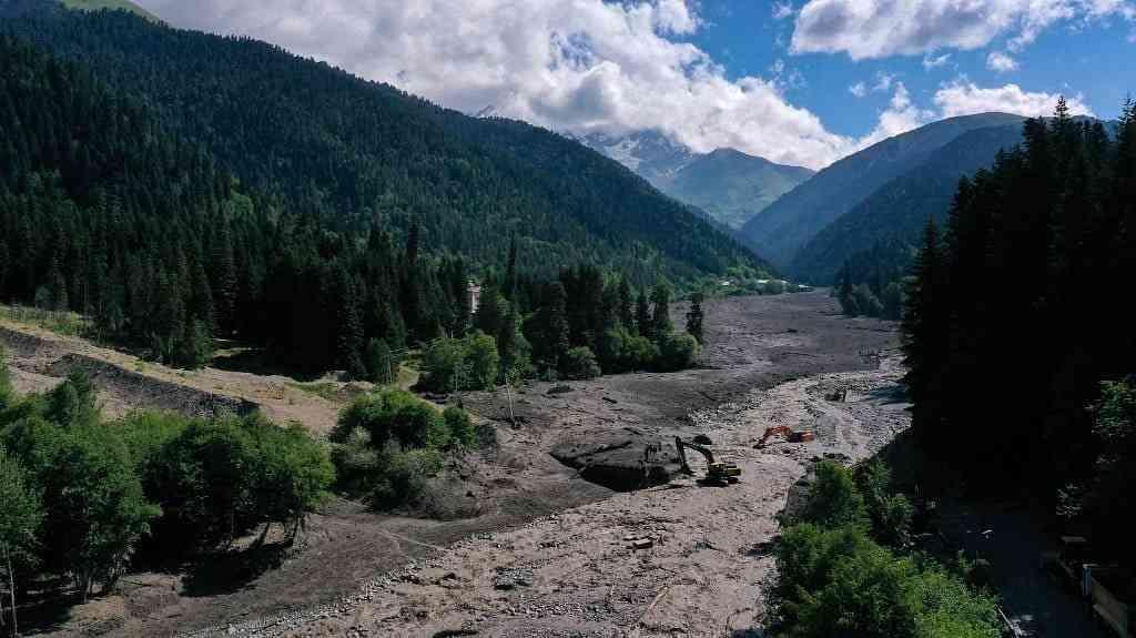 O ministro da Infraestrutura, Irakli Karseladze, foi ao local e relatou o desaparecimento de 35 pessoas, “com as quais não é possível estabelecer contato”, disse à imprensa local.