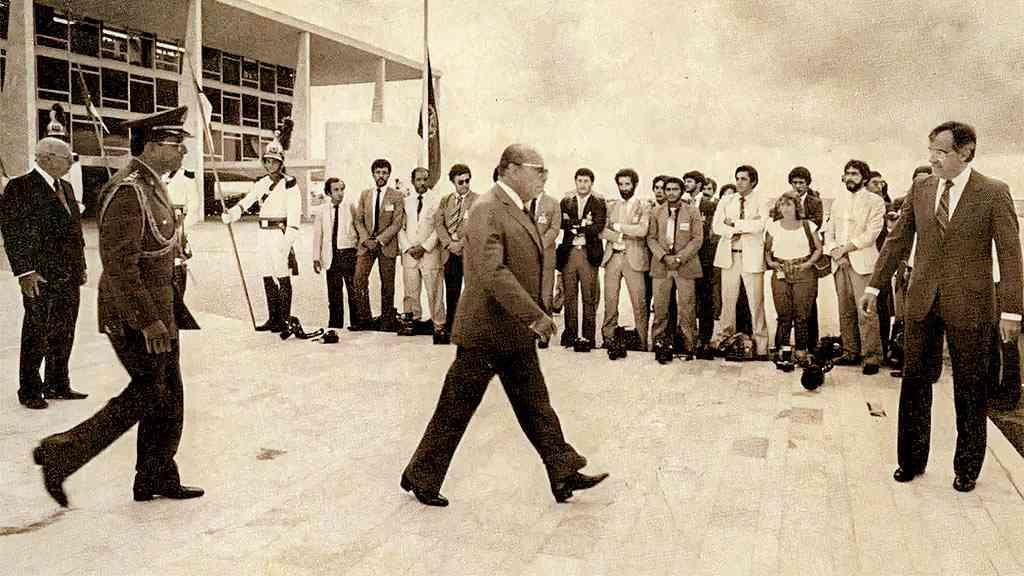 Câmeras no chão e os olhares fixos à cena. Um gesto de ousadia feito há mais de 40 anos por um grupo de fotógrafos no pé da rampa do Palácio do Planalto entrou para a história da cobertura política durante a ditadura no Brasil. Neste domingo, Dia do Jornalista, episódios de resistência como esse, conhecido como ‘Máquinas ao chão’, costumam ser lembrados.