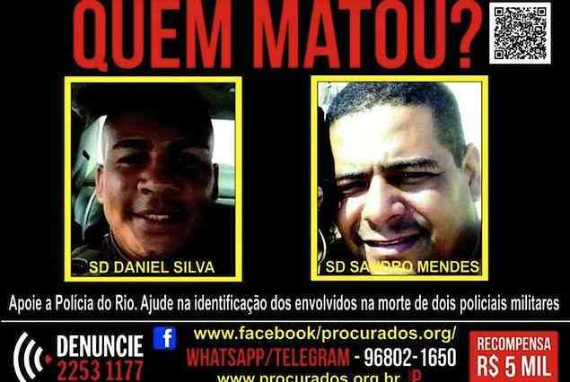 A Delegacia de Homicídios da Capital conseguiu identificar os dois traficantes como autores da morte do sargento da Polícia Militar, Fábio Alexandre Eufrázio Silva, de 45 anos, lotado no batalhão da Maré. O crime aconteceu na madrugada do dia 18 deste mês, na Avenida dos Democráticos, em Manguinhos, Zona Norte do Rio.