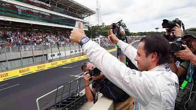 Felipe Massa quebra o protocolo, desce do pódio e vai comemorar com a torcida