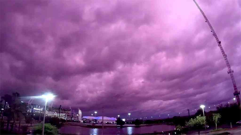 Os céus da Flórida assumiram uma tonalidade roxa, pouco antes da chegada do furacão Dorian
