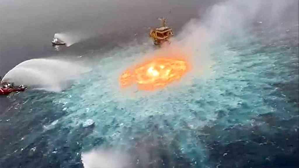 O vazamento de gás subaquático causou um incêndio no Golfo de Yucatán, no México, atingindo uma vasta extensão de água e mobilizando enormes navios, na tentativa de conter o fogo. Nas redes sociais, o incêndio ficou conhecido como ‘Eye of Fire’ (em português, olho de fogo). Durante as últimas 24 horas, o incidente surpreendeu as autoridades.