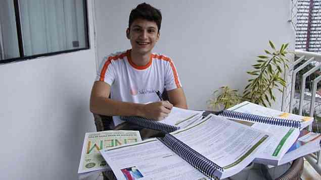 Para conciliar estudo e trabalho, o brasiliense Lucas Martins, 17 anos, encontra em casa o apoio necessário na preparação para o Exame Nacional do Ensino Médio (Enem). A mãe de Lucas, Maria da Glória Martins, cuida das refeições e do ambiente para o filho estudar.