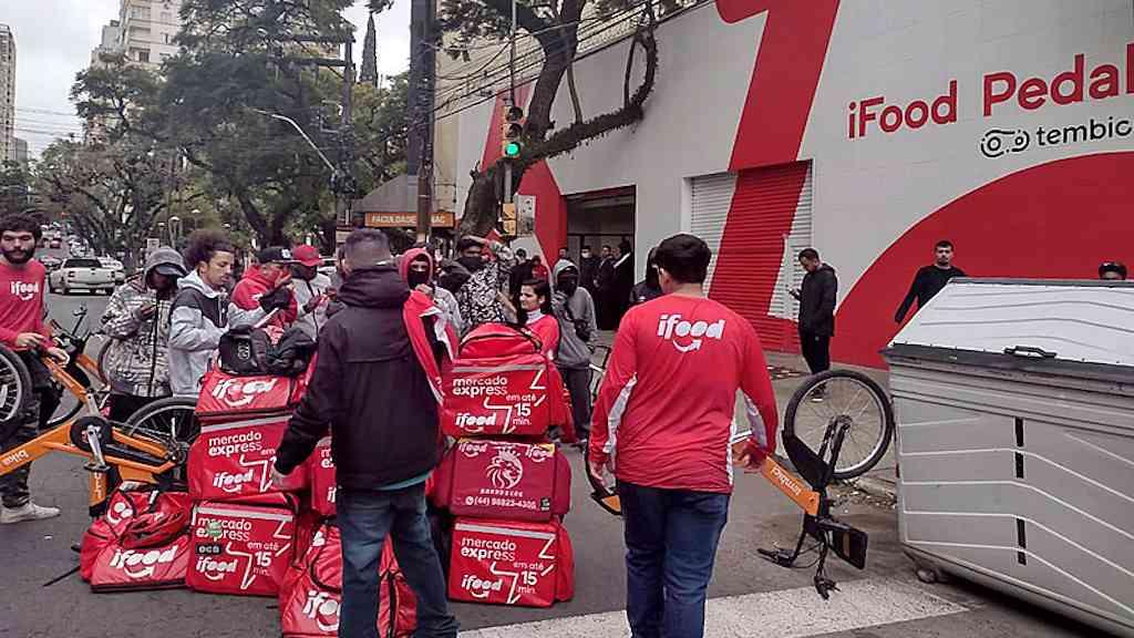 Entregadores do iFood protestam contra aumento das taxas de uso de bicicletas