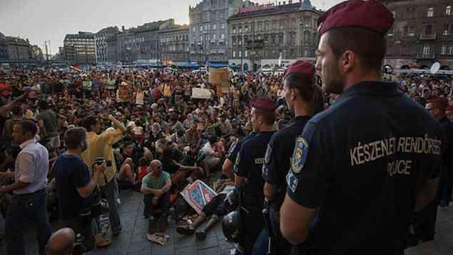 Os húngaros sabem que a polícia do país rapidamente lança mão de canhões de água e gás lacrimogêneo. Mas não há sinal de violência, mesmo que alguns manifestantes andem sem rumo pela praça, molhados de suor e com olhar selvagem. Eles estão exaustos e, sobretudo, frustrados. Ninguém lhes diz o que vai acontecer dali para frente, as autoridades não fornecem água, comida ou lugar para dormir. A única ajuda vem de organizações não governamentais.