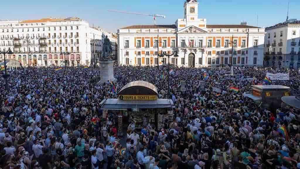 Em Madri, milhares de manifestantes se reuniram na Puerta del Sol e exibiram cartazes e faixas contra a homofobia. Em Barcelona, ativistas também marcharam por uma rua importante entoando slogans e agitando cartazes e bandeiras com as cores do arco-íris.