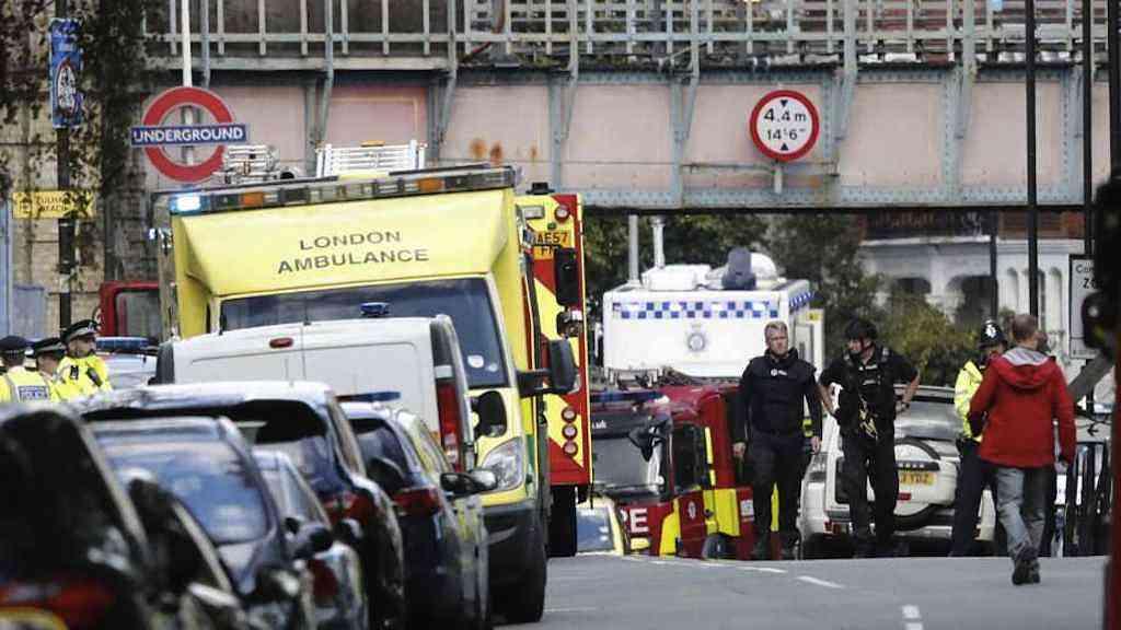 Um artefato de fabricação caseira, dentro de um cubo branco; explodiu parcialmente em um trem da linha District; que seguia para o centro da capital britânica, na parte da manhã.