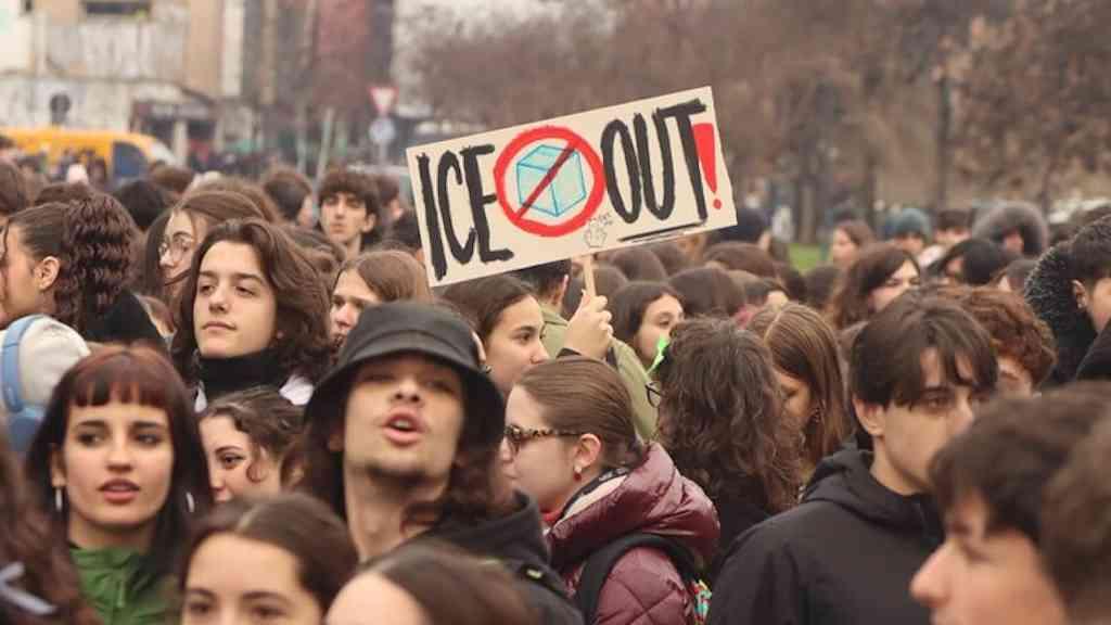 A marcha em Milão começou na Piazza Leonardo da Vinci e seguiu até o Parque Trotter, onde os participantes entoavam gritos de “Fora ICE” e carregavam uma faixa na frente da manifestação com a frase “Milano vi schifa” (“Vocês me dão nojo, Milão”).