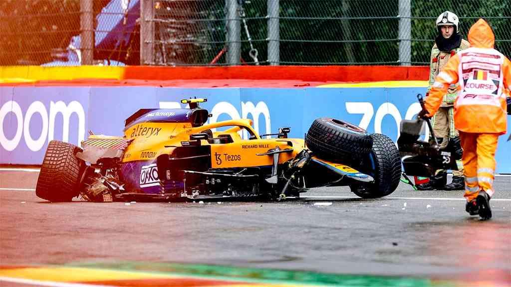 O carro de Lando Noris ficou destruído no treino classificatório deste sábado
