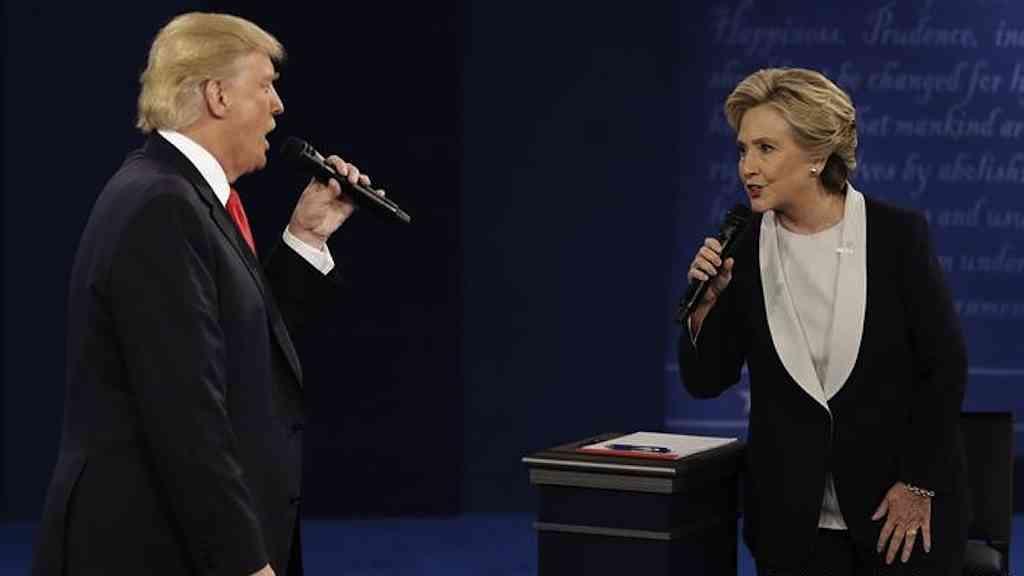 Isso ela não vai mudar em nada." Clinton criticou Trump fortemente por seus planos sobre política externa. Afirmando que, se Trump ganhar a eleição, os EUA "se tornarão menos seguros, e o mundo se tornará mais perigoso".