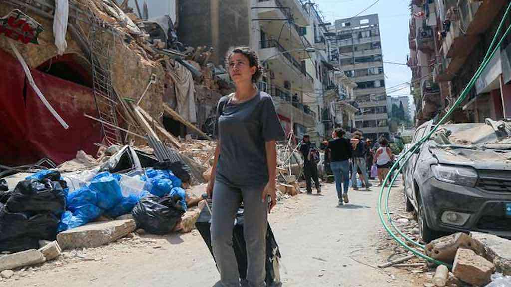 Moradora leva o que restou de sua moradia. Explosão devastou Beirute e deixou 3 mil desabrigados