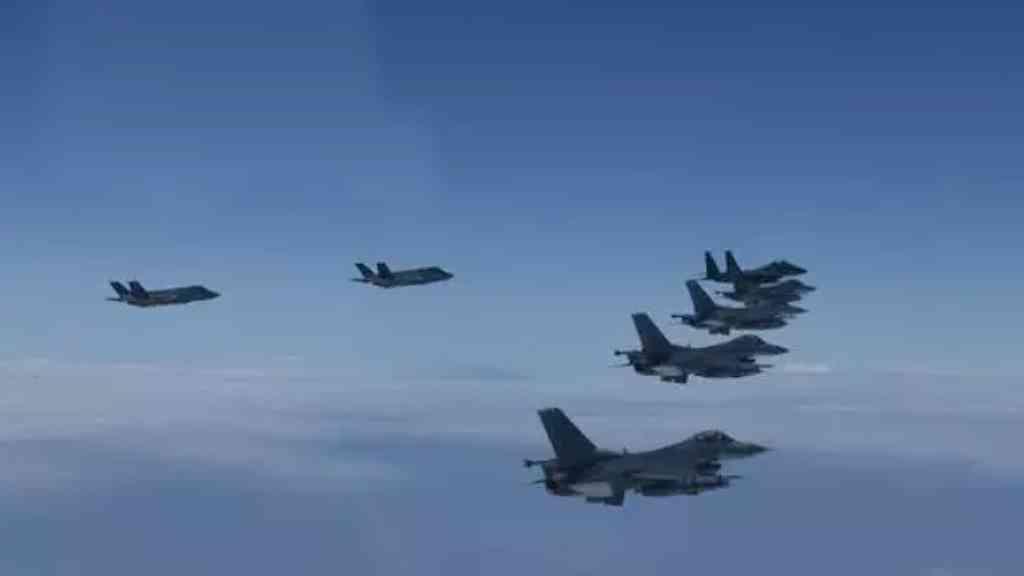 Os jatos sul-coreanos e norte-americanos durante os exercícios militares