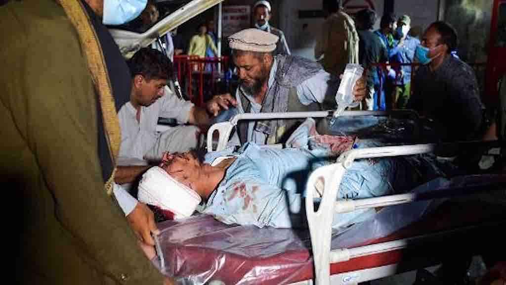 Feridos ao lado de cadáveres após ataque do lado de fora do aeroporto de Cabul, no Afeganistão