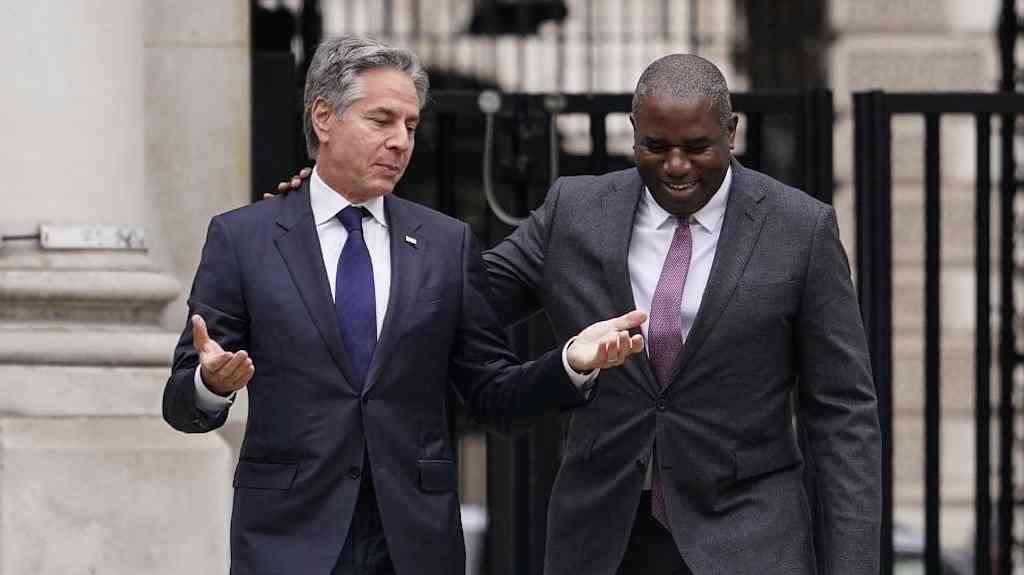 Blinken iniciou na segunda-feira uma visita ao Reino Unido para compartilhar com o novo governo britânico do primeiro-ministro trabalhista Keir Starmer a determinação de ajudar a Ucrânia e resolver suas diferenças sobre Gaza.