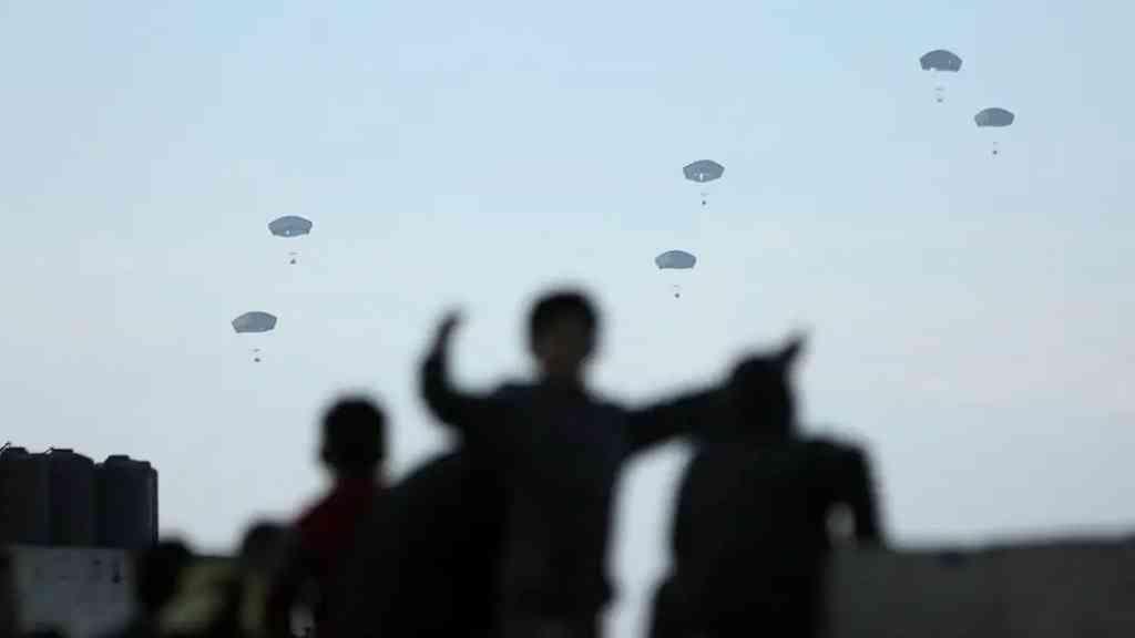 As Forças Armadas dos Estados Unidos realizaram neste sábado seu primeiro lançamento aéreo de ajuda humanitária em Gaza, disseram autoridades norte-americanas em um momento em que agências de ajuda alertam para o desastre humanitário crescente à medida que Israel segue massacrando o território palestino.