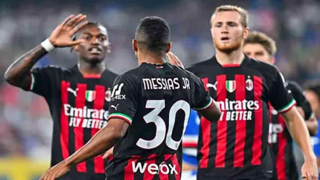 Junior Messias celebrando um dos gols do Milan contra a Sampdoria