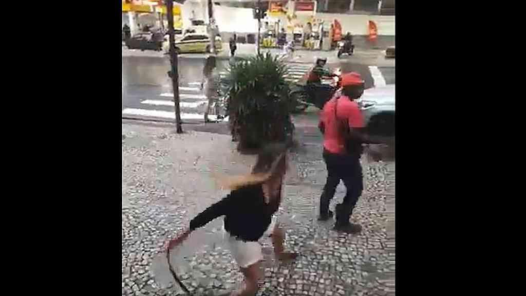 Uma moradora do bairro de São Conrado, na Zona Oeste do Rio de Janeiro, identificada como Sandra Matias Correia de Sá, foi flagrada no último domingo agredindo com uma guia de cachorro e xingando um entregador negro.