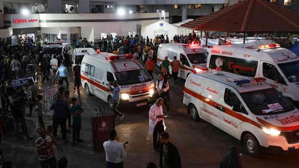 No principal hospital de Khan Younis, o Nasser, os feridos chegavam de ambulância, carro, caminhão e carroça de burro, após o que os sobreviventes descreveram como um ataque que atingiu uma escola que estava sendo usada como abrigo para os deslocados.