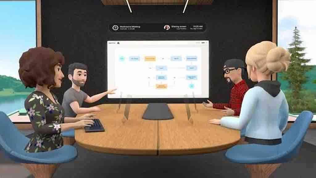 O Facebook lançou nesta quinta-feira um teste de um novo aplicativo de trabalho remoto de realidade virtual (RV), em que os usuários dos headsets Oculus Quest 2 da empresa podem realizar reuniões como versões de avatar de si mesmos.