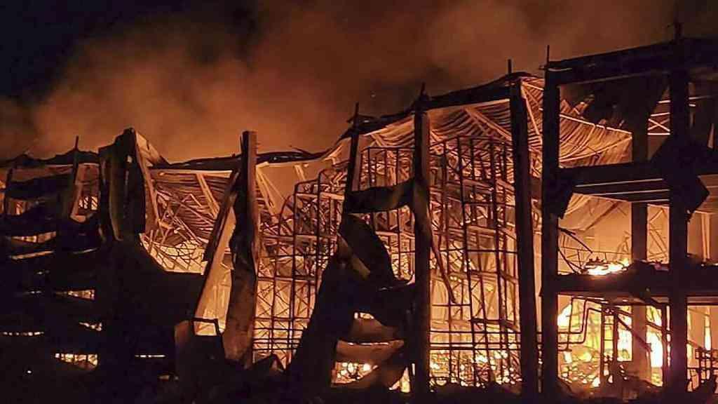 Um depósito de alimentos foi incendiado por um míssil na cidade de Odessa, no Mar Negro, onde autoridades relataram que três pessoas ficaram feridas.