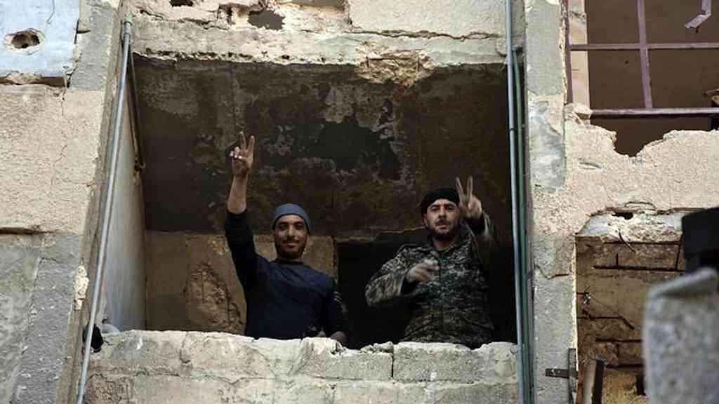 A emissora estatal de televisão confirmou, citando fontes militares, que o Exército e seus aliados tomaram por completo a região, antes o maior bastião urbano das forcas rebeldes. Trabalharam para retirar minas terrestres do local.