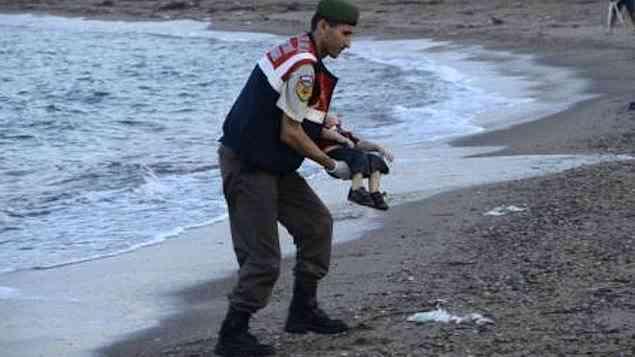 Uma fotografia do corpo do menino, vestindo uma camiseta vermelha e bermuda, com o rosto afundado na areia, estampou jornais de todo o mundo nesta quinta-feira, gerando indignação pela falta de ação de países desenvolvidos na ajuda a refugiados.