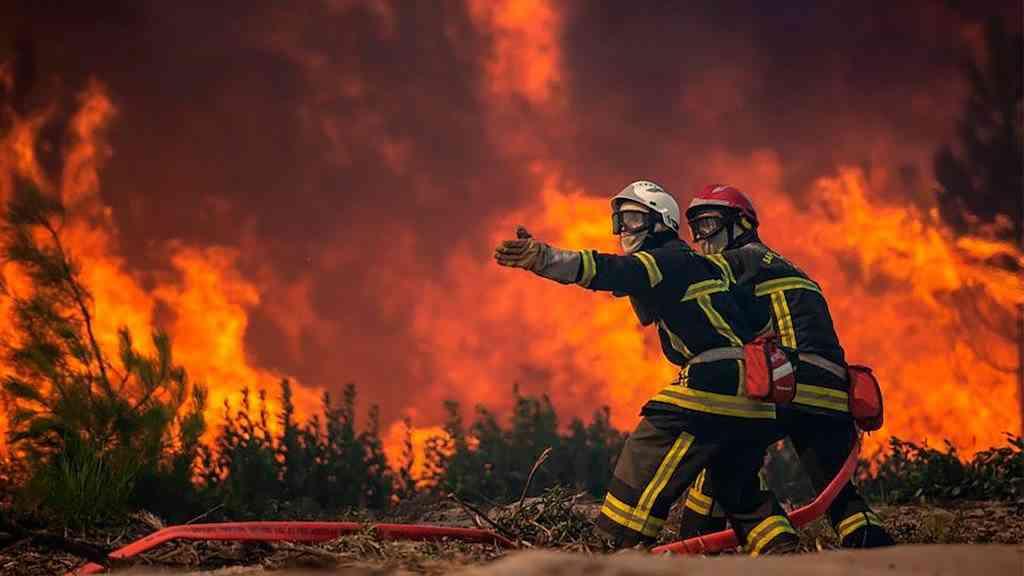 Bombeiros voaram para a França de toda a Europa para combater um incêndio florestal "monstro" pelo terceiro dia, perto da região vinícola de Bordeaux, nesta quinta-feira, em meio a temperaturas escaldantes que não devem diminuir antes do fim de semana.