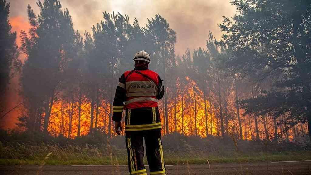 Espessas nuvens de fumaça podiam ser vistas das famosas praias da costa atlântica perto da imponente duna de areia Pyla, perto de Arcachón, enquanto ventos fortes e altas temperaturas continuavam alimentando incêndios florestais. O ministro do Interior, Gérald Darmanin, enviou três aviões de água adicionais para a região.