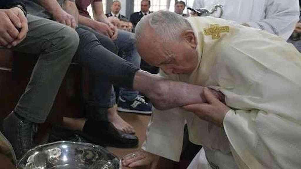 Papa Francisco lava pés de detento na missa 'In coena Domini' de 2018