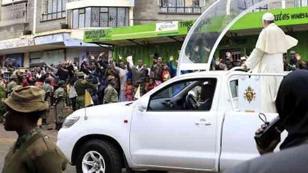 Em seu último dia no Quênia, o papa visitou o distrito de Kangemi, em Nairóbi, um bairro de estradas esburacadas, esgotos a céu aberto e barracos precários, localizado a algumas centenas de metros de blocos de apartamentos em edifícios inteligentes e condomínios fechados.