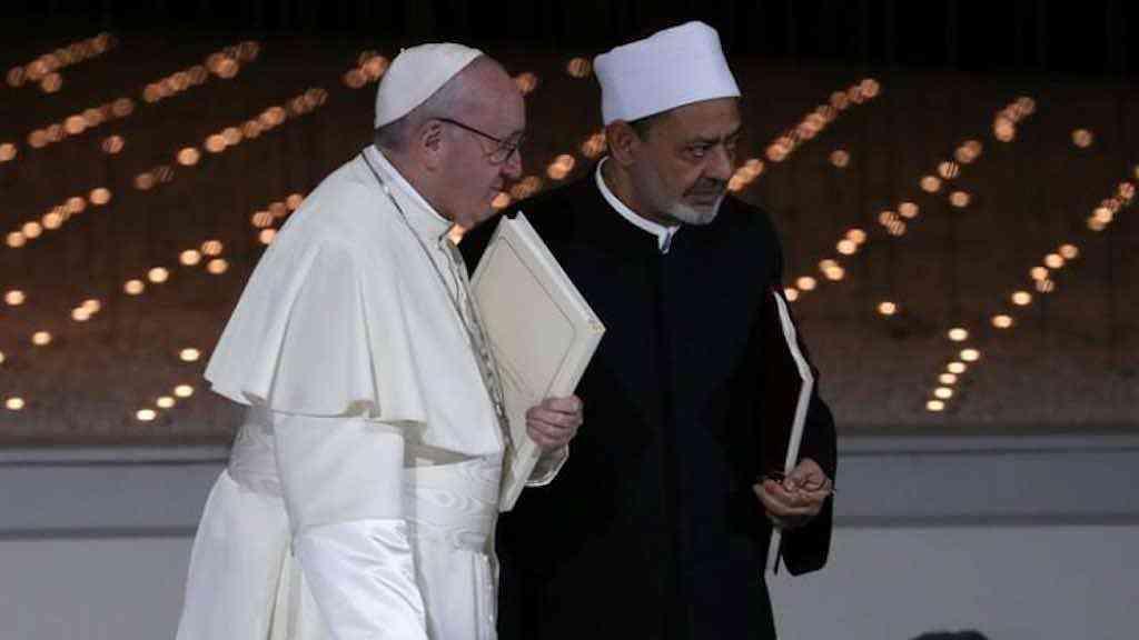 Ele se referia a um documento que assinou com o xeique Ahmad el-Tayeb, grande imã da mesquita e universidade egípcia de Al-Azhar, uma das instituições teológicas e educativas mais respeitadas do islamismo.