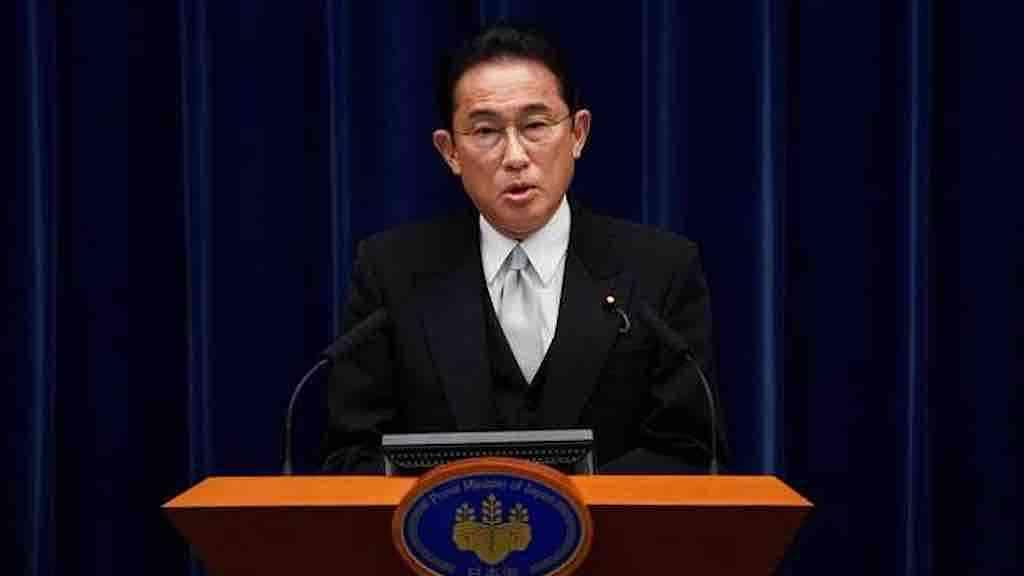 Premiê do Japão, Fumio Kishida, durante entrevista coletiva em sua residência oficial em Tóquio