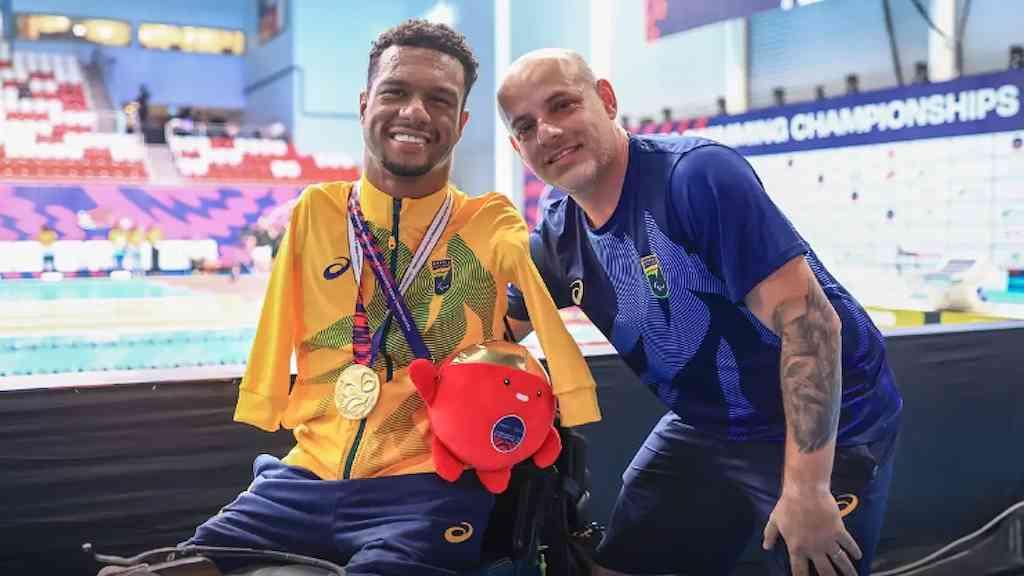 Os dois trabalham juntos desde 2015. Foram sete anos representando o Clube Bom Pastor, de Juiz de Fora (MG), até a mudança para o Praia Clube, de Uberlândia (MG). A parceria transformou o mineiro, que aprendeu a nadar para “não se afogar”, no principal nome da classe S2, a segunda de maior grau de comprometimento entre as dez da natação paralímpica voltadas à deficiências físico-motoras.
