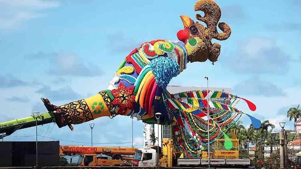 A subida do Galo é um dos marcos da festa carnavalesca em Pernambuco. A estrutura começou a ser montada no último sábado, na ponte Duarte Coelho. Para a cobrir a estrutura foram usadas peças confeccionadas de garrafas pet, canos de PVC, pneus, pneus, lonas e outros materiais sustentáveis.